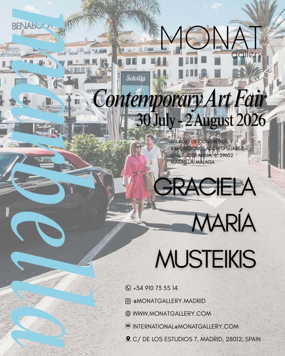 El 2026 sigue consolidándose como el año de mayor expansión internacional para Graciela Musteikis. Tras sus exitosas presentaciones en Madrid y Múnich, la artista se traslada a la exclusiva Costa del Sol para participar en la Contemporary Art Fair de Marbella, de la mano de MONAT Gallery.